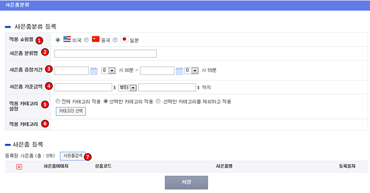▶ 사은품분류 등록하기