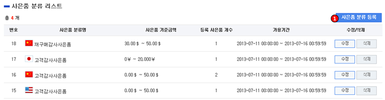1. ① 사은품 분류 등록 :